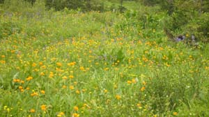 На другой стороне шоссе море цветов, туча бабочек, обвязанные